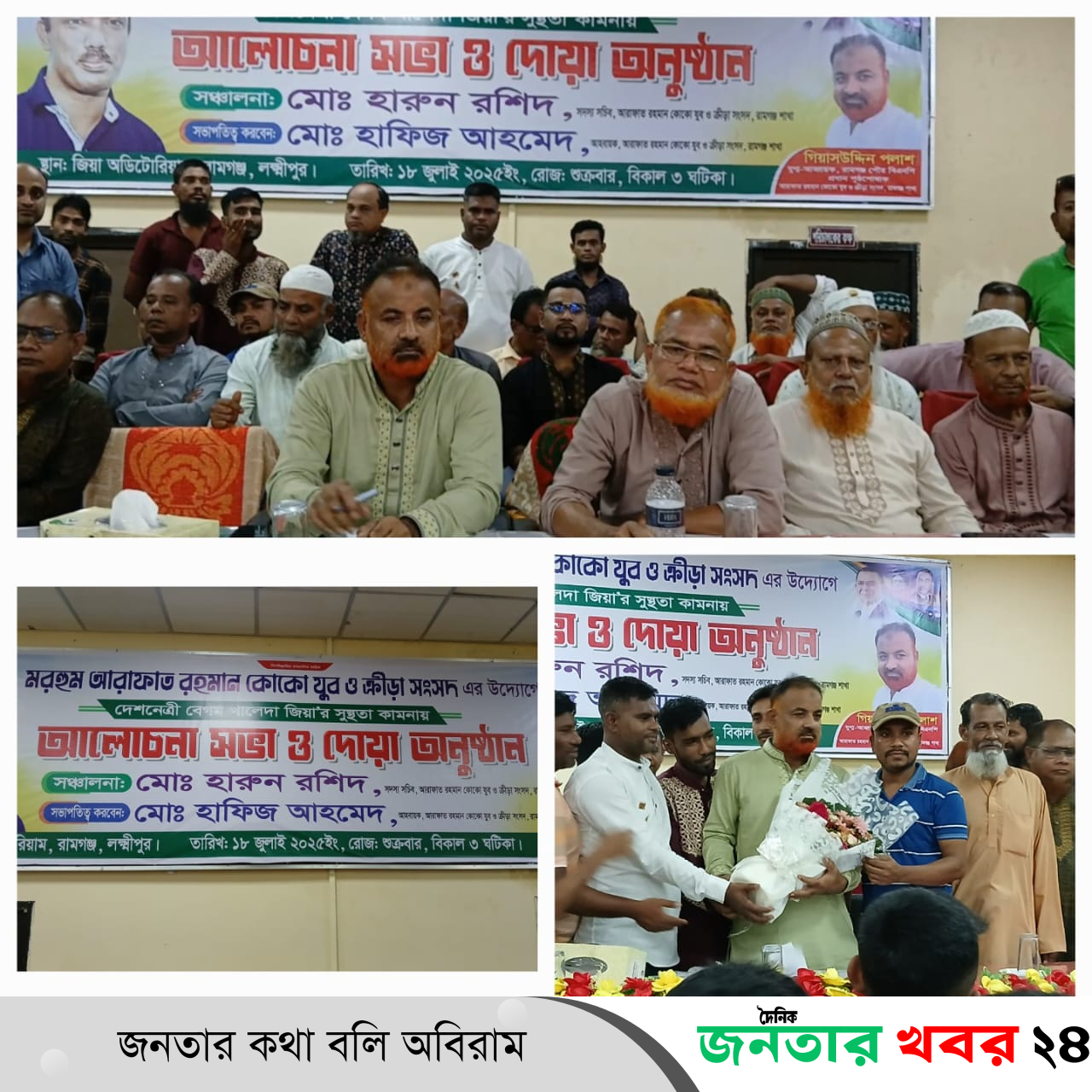 সভাপতিত্ব করেন মোঃ হাফিজ আহমেদ, আহবায়ক, আরাফাত রহমান কোকো যুব ও ক্রীড়া সংসদ, রামগঞ্জ শাখা